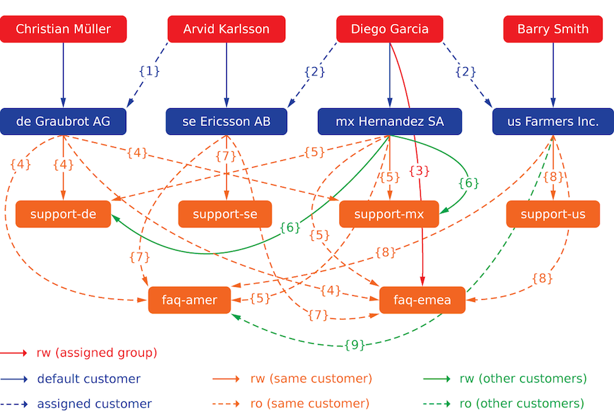 Customer 'Ericsson AB' has 'Same Customer' context 'rw' permission to group 'support-se'