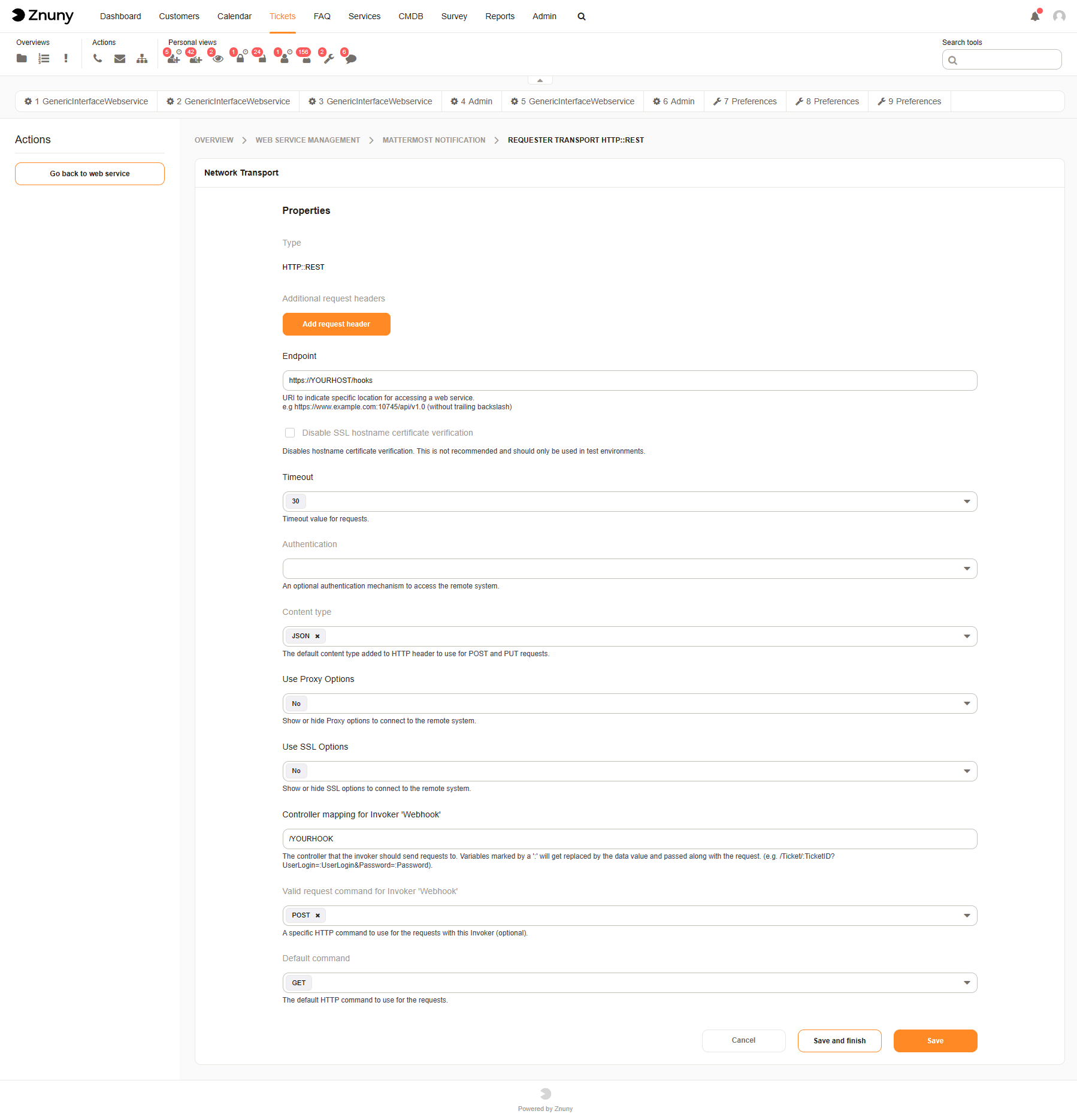 Both settings together must match your webhook. If the webhook looks like this: https://mattermost.znuny.org/hooks/qjx7yo62hskgzdp17stjn5m5r5o then YOURHOST is mattermost.znuny.org and YOURHOOK qjx7yo62hskgzdp17stjn5m5r5o.