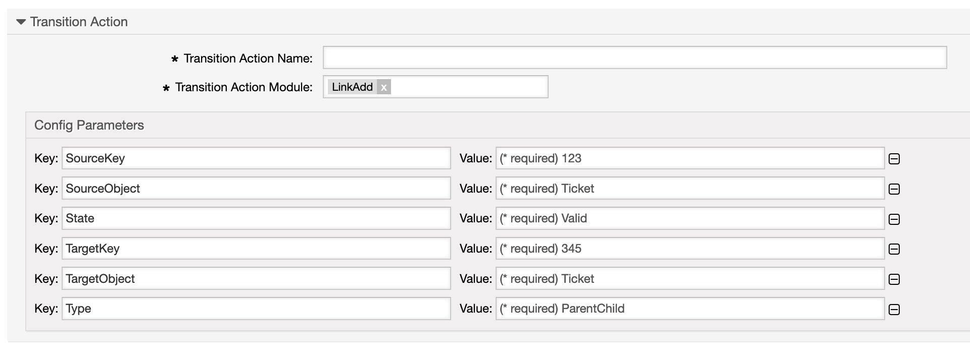 The parameter ForeignTicketID/ForeignTicketNumber does not work with this transition action.