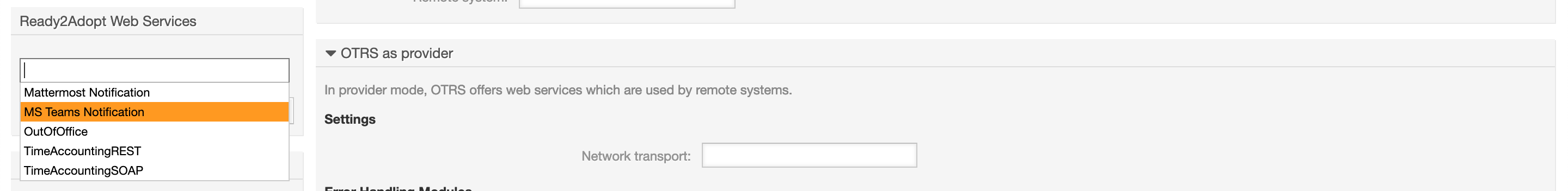Now the webhook URL needs to be added to the transport if the requester. Click on the name of the web service and configure the network transport of the Requester section: