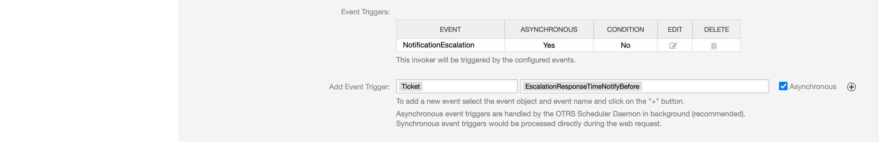 Now we need to add an event when the invoker should be executed. Click on the name of the predefined invoker Escalate.