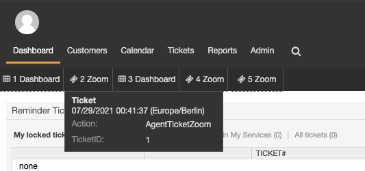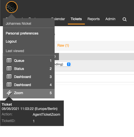 Last views is a feature to give agents a quick access to recently used objects. It is build for power users, to enable fast context switches between the several tickets.